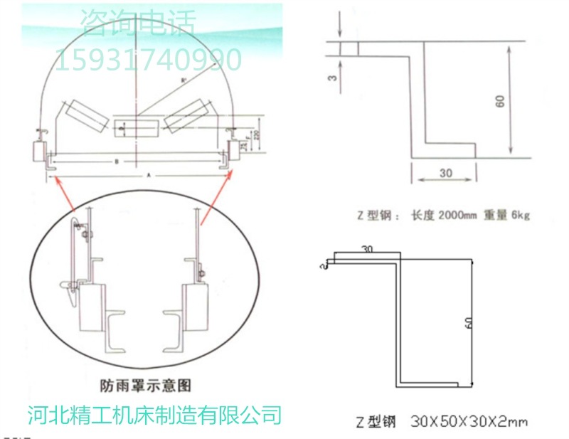 皮帶機防雨罩安裝示意圖-河北精工